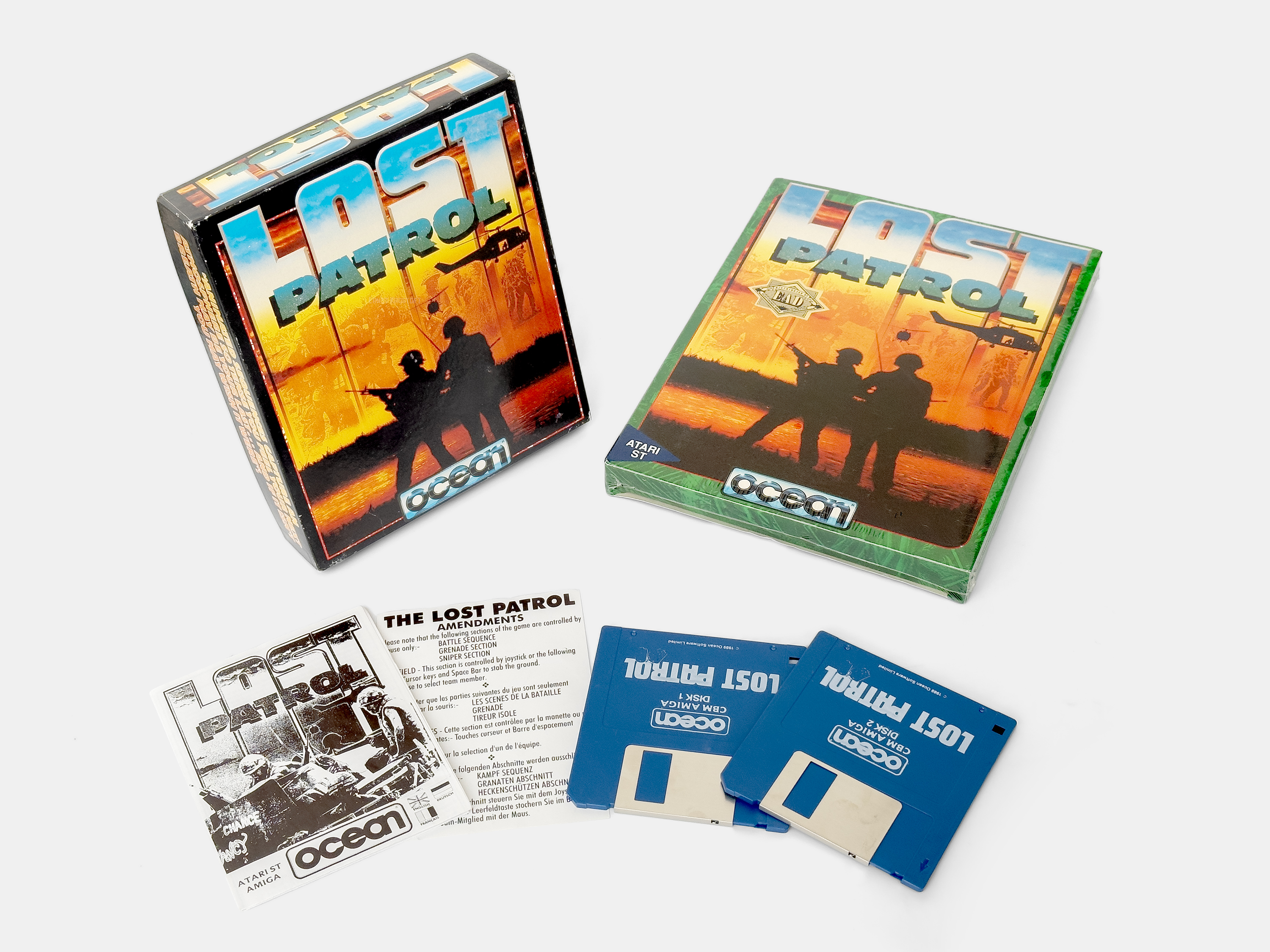 Ian Harling and Simon Cooke’s The Lost Patrol was picked up by UK powerhouse Ocean Software and published for the Commodore Amiga around Christmas 1989. The European release came in the classical small box used by most publishers on the continent while North America received a larger box, distributed by Electronic Arts Distribution.