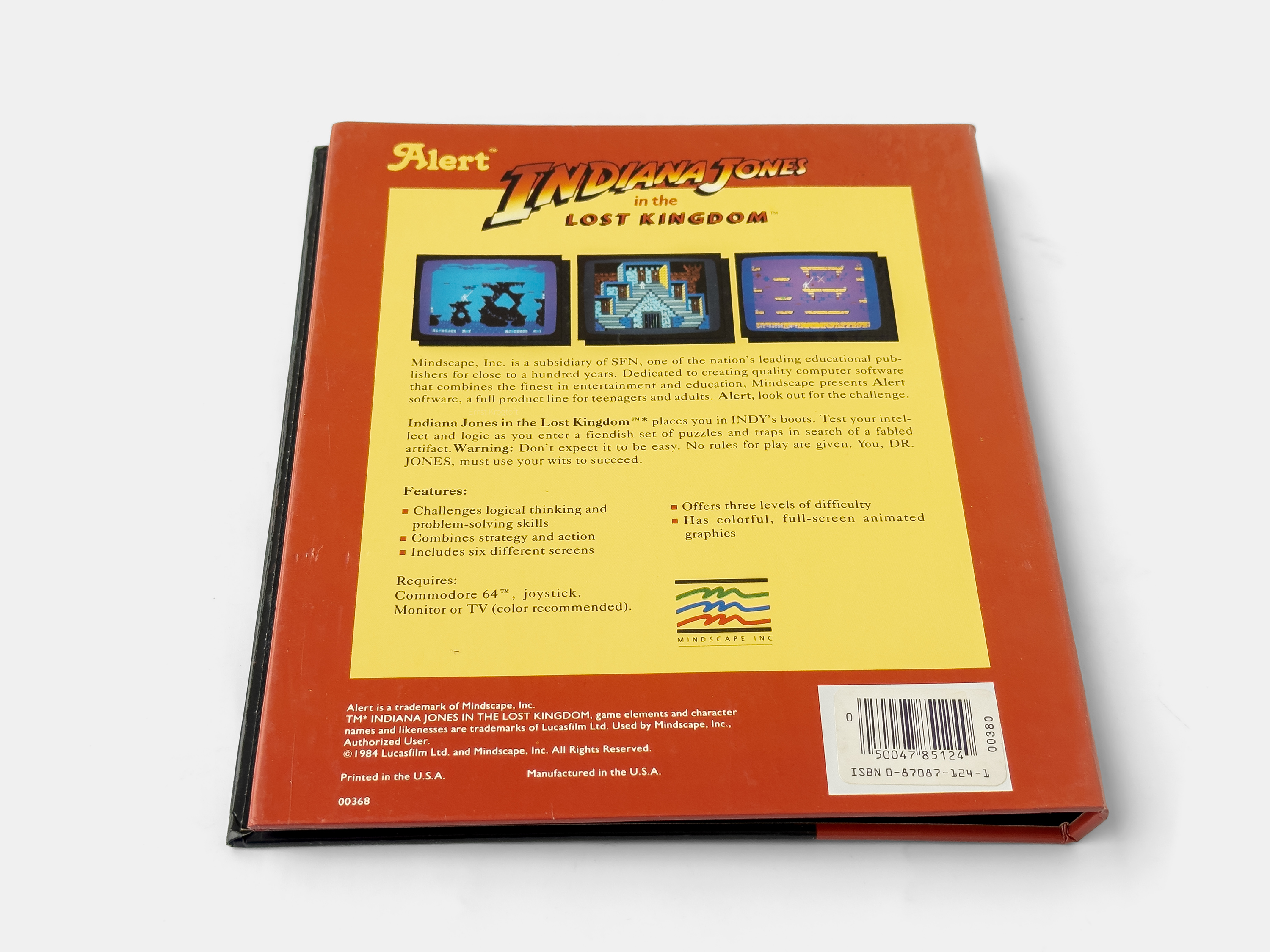 Initially focused on educational and entertainment software, Mindscape structured its catalog under different labels to target specific audiences. One of these, the Alert label, was dedicated to recreational software for teens and adults. In the spring of 1984, the company’s first product hit the market, and as part of its early expansion, Mindscape secured the right to use elements of Lucasfilm’s Indiana Jones trademark for an upcoming game.