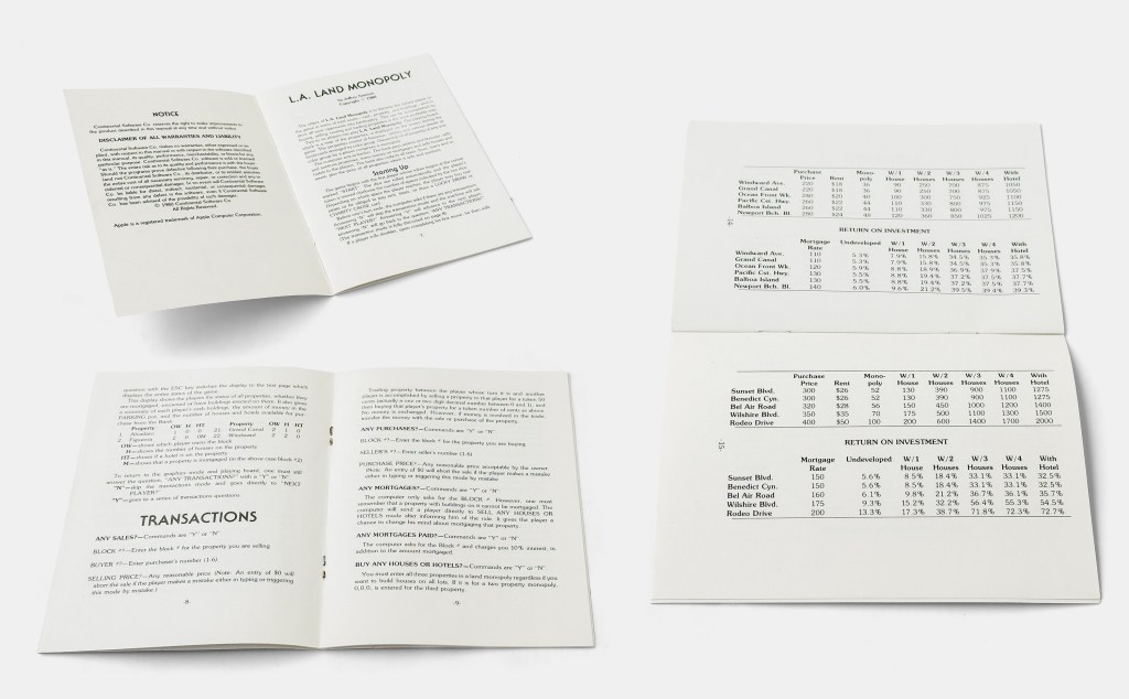 The game included a 16-page manual that detailed the rules, property values, and costs of houses and hotels, guiding players through Stanton’s Los Angeles-themed take on Monopoly.