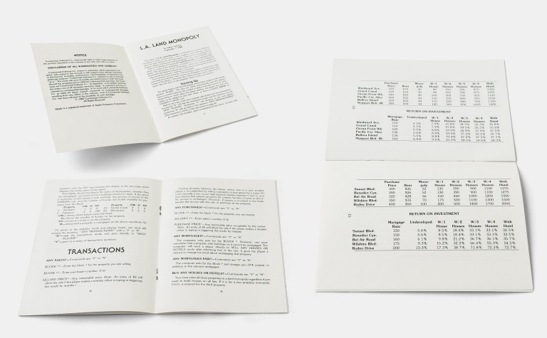 Stanton’s digital reimagining of the classic board game allowed 2–6 players to buy and trade Los Angeles streets, with the computer handling money, property deeds, and transactions.