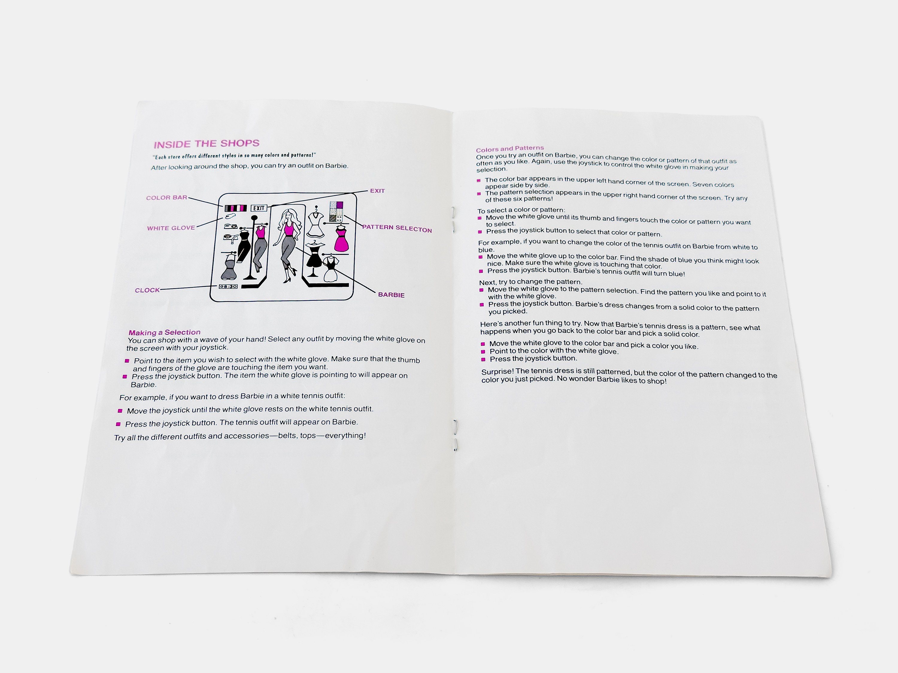 The challenge with Barbie was very different from Epyx’s usual action-heavy fare. Instead of combat or athletic competition, the game needed to capture the fantasy of fashion, social life, and imagination that defined the Barbie brand. This took the form of a simple narrative-driven “activity toy” where players guided Barbie through a day of shopping, fashion choices, and a date with Ken. Instead of points or enemies, the game emphasized exploration, choices, and presentation.