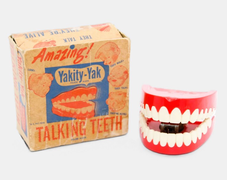 Eddy Goldfarb sold his “chattering teeth” design to novelty company H. Fishlove & Co., which released the toy as “Yakity Yak Talking Teeth” in 1949.