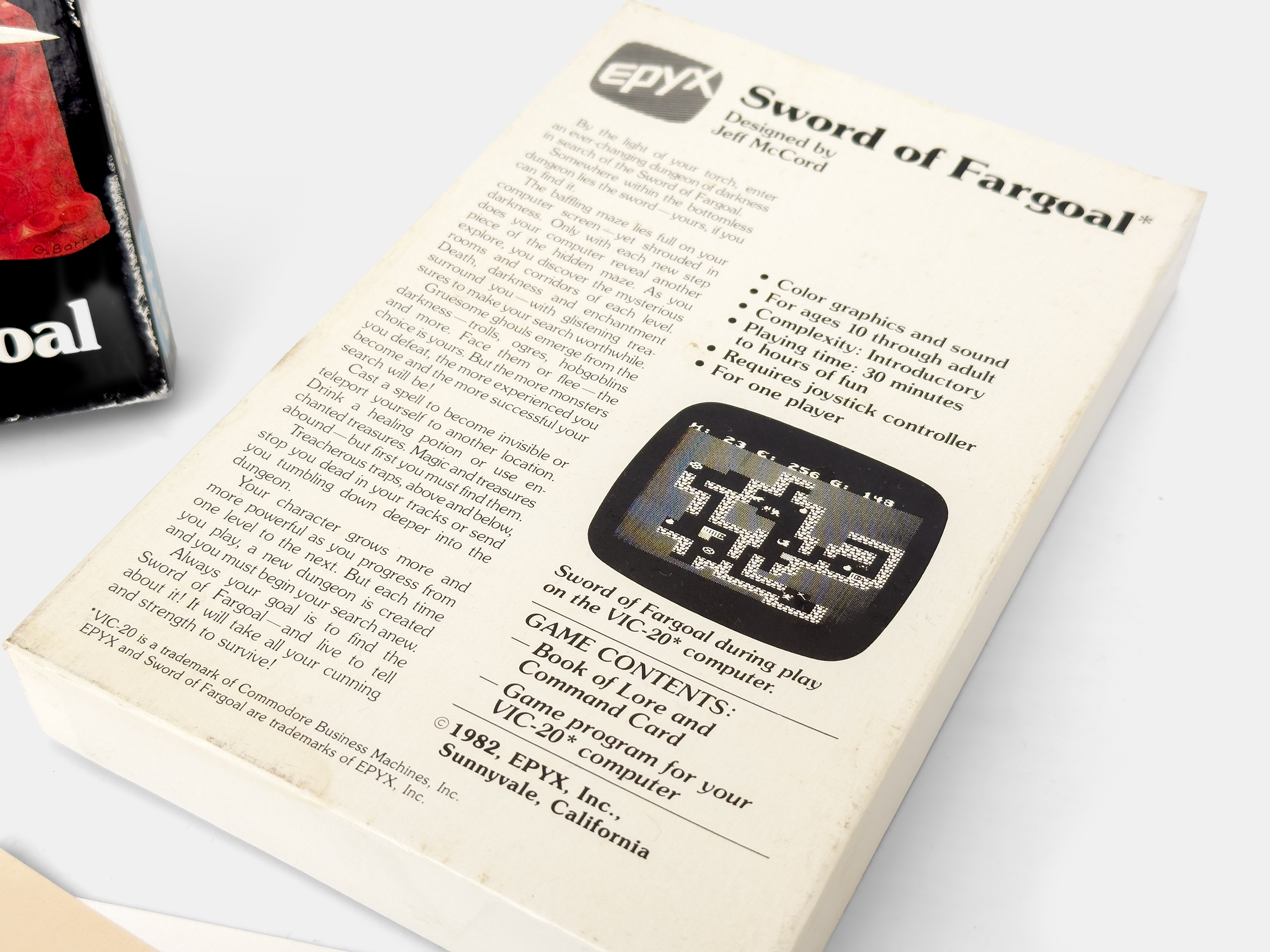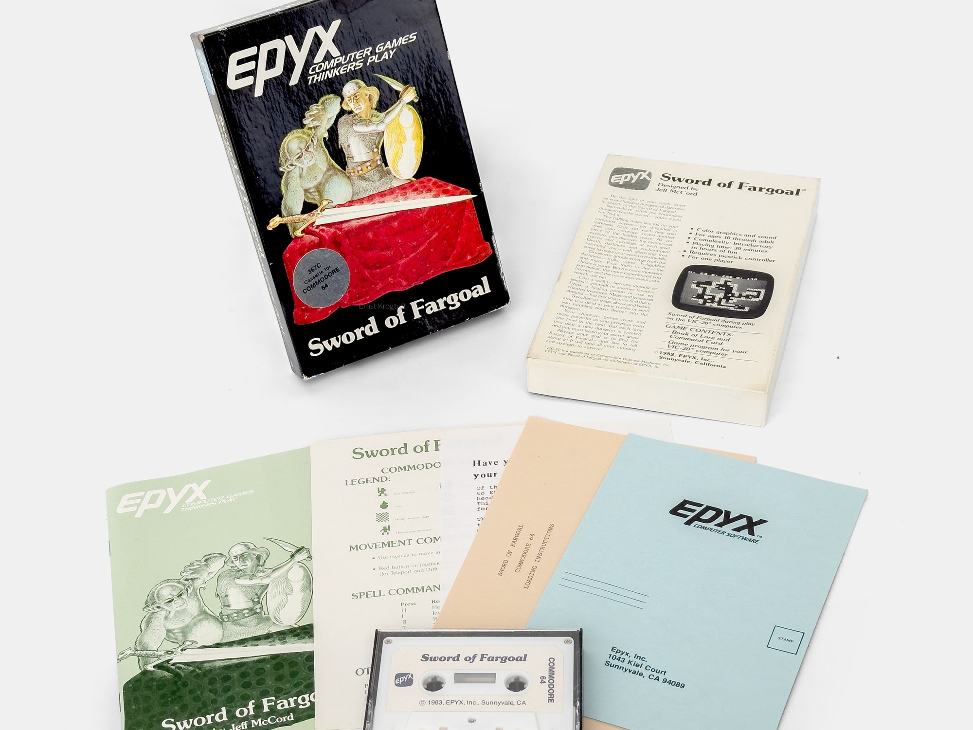 Following the VIC-20 debut, Epyx released the Commodore 64 port of Sword of Fargoal in 1983. Jeff McCord remained the creative lead, while Scott Carter and Steve Lepisto handled the assembly-level routines that sped up graphics and movement. The game shipped on either cassette or 5¼″ floppy disk and was updated with slightly better graphics, a few added features, and ominous sounds punctuated by monster movement.