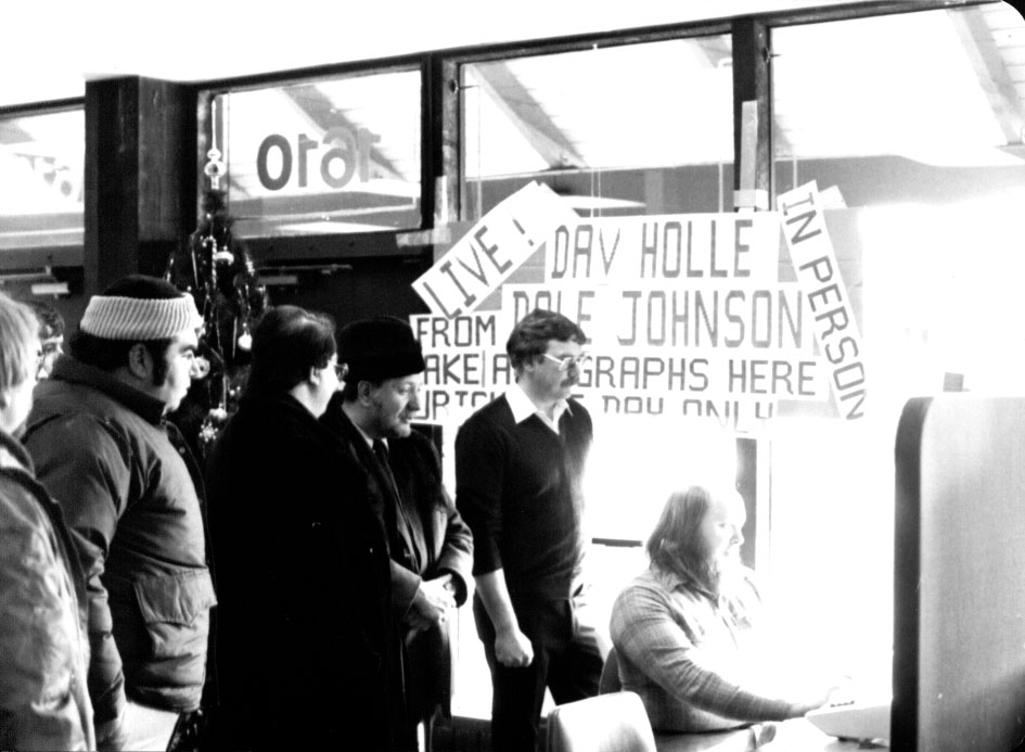 Phoenix Software authors Dav Holle and Dale Johnson, with Holle seated at the Apple II keyboard and Johnson standing just behind him. The photograph was taken at Data Domain in Schaumburg, Illinois, less than half an hour’s drive from Phoenix Software’s base, around the time of Sherwood Forest’s release. Data Domain was a local computer store active throughout the late 1970s and early 1980s, working closely with area programmers and small publishers. Specializing in computers, software, magazines, and technical books, it served as a neighborhood hub for Chicago-area enthusiasts. For a company like Phoenix Software, lacking national distribution and often overlooked by major wholesalers, stores like Data Domain were essential, providing a direct path for its games to reach customers.