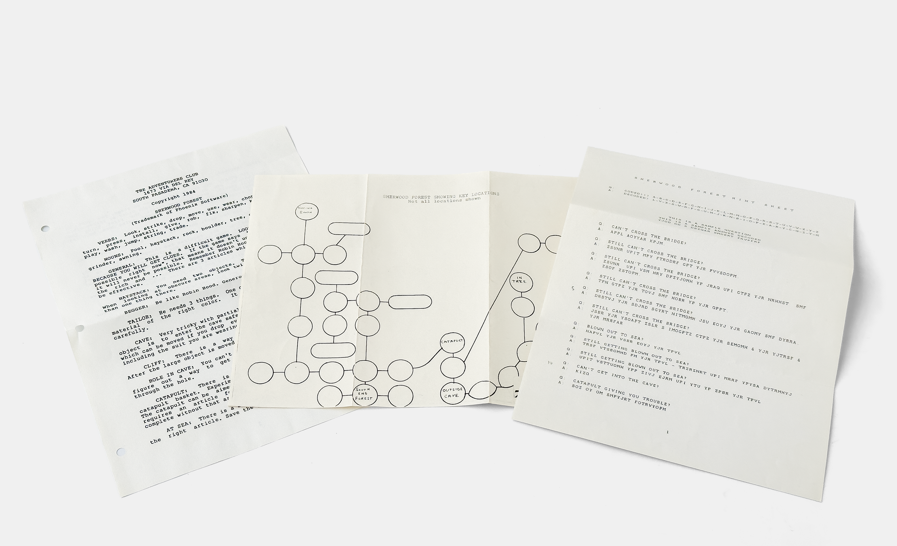 In an era before the World Wide Web and online hints, small enthusiastic user groups dedicated themselves to providing guidance for early 1980s adventure games. Shown here is a 1984 walkthrough by California-based The Adventures Club, alongside an official map and hint sheet that could be ordered directly from Phoenix Software.