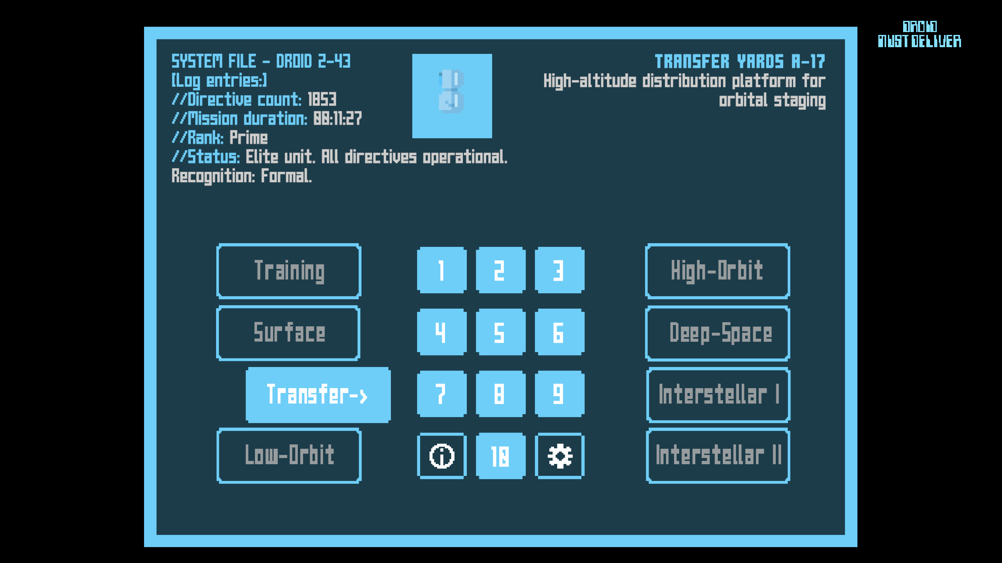 I had been toying with the idea of putting my own spin on the concept for a long time, and last autumn I finally decided to dedicate some spare time to it. I envisioned a sci-fi theme and setting, where the player would advance through ranks as a small droid with big dreams. The system is both encouraging, as your effort is crucial to the war effort, and quietly mocking, keeping the ambitions in perspective.