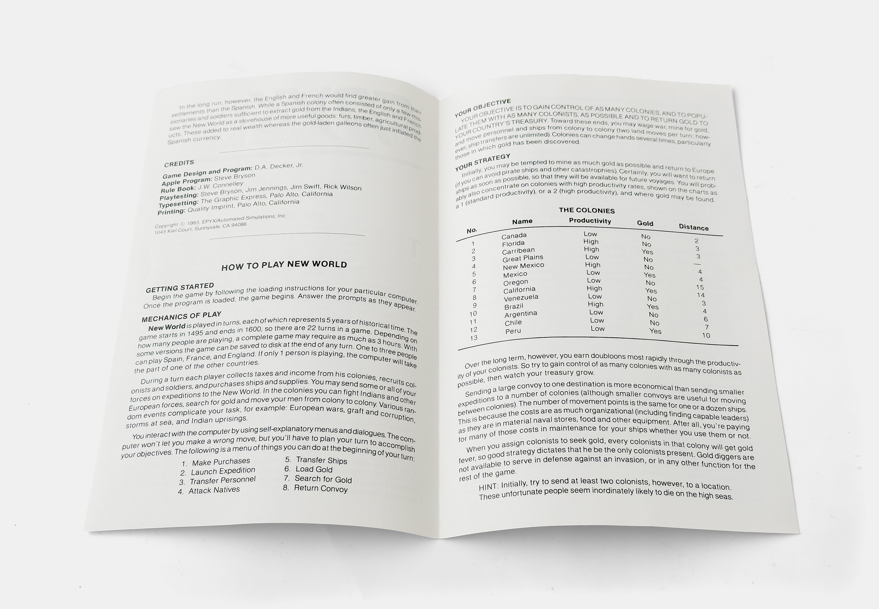 The original New World manual was unclear on certain aspects of gameplay.